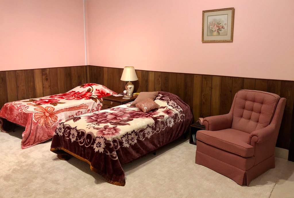 The first iteration of the installation was for the 2018 exhibition, ‘Exit Strategies’ at the Women’s Center for Creative Work in Los Angeles. I recreated a semblance of the teenage bedroom that I shared with my sisters. The details in the room span a range of time periods as there is a large age gap between my sisters and I and my family lived in that house for close to 30 years. The wallpaper and wood panelling were from the 70s–wood panelling being common in Chicago basements. Most of the pop culture artefacts were from the 80s and 90s when I was a child and adolescent.