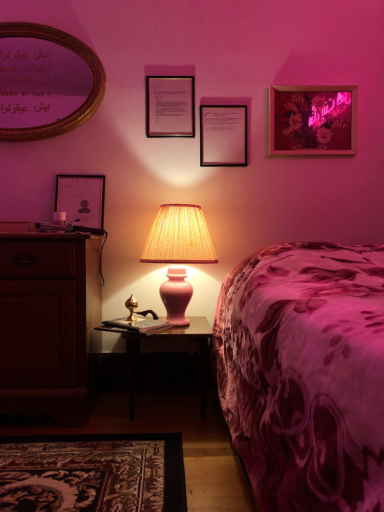 I think there is instant familiarity in these spaces. When I was first considering talking about some of the more sensitive subjects and sharing some of my personal documents, I had a lot of anxiety. I knew the risk of being made out to be a representative of the Yemeni experience even though that has never been my intention. I wanted to talk about some of the issues that are important to me through the construction of a space that had a sense of nostalgia. Bedroom spaces invite a natural feeling of comfort but I included things that complicate that quality of comfort and nostalgia. There are memories that I recall fondly from that time and others that are very troubling.